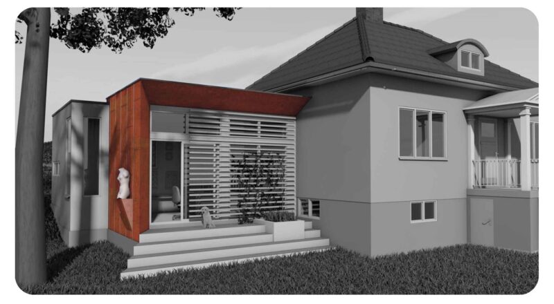 Entré flyttad till läge mot gata, ny interiörtrappa och anpassningar i husets planlösning. Genomförande hösten/ vintern 2024-25