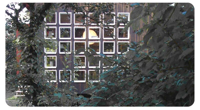 Bokhuset utformat för Antikvariat Morris, specialiserad på typografi och grafisk design som inrymde sin verksamhet, internetbutik, bokhandel och bokförråd i ett alldeles eget hus på en villatomt. Numera omstöpt till bostad.